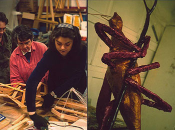 the theme of movement. They worked with wood, hot glue and mixed media to create armatures.