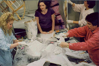 Sculptures were later finished with a layer of fiberglass and durable epoxy paint.