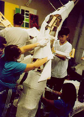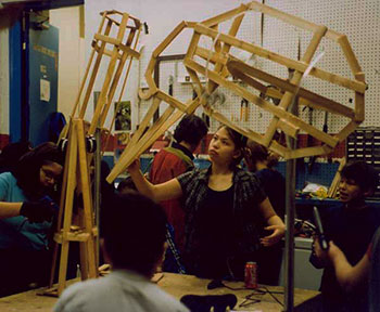 the theme of movement. They worked with wood, hot glue and mixed media to create armatures.