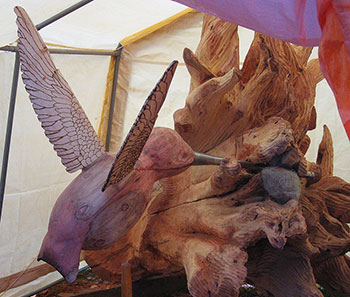 The dead sequoia tree formed the flower stem and the body of the humming bird.